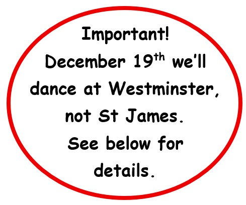 - Second-Friday set dancing 6:30 till 7:30: Marshall Cates leads set dance review starting at 6:30 before our regular dancing. These are mostly Scottish country dances, with occasionally dances from US, England, or other countries included. Admission included with general admission. 2nd Friday set dancing is dark for December and January but resuming in February.