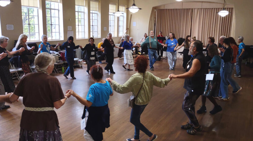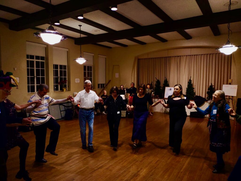 In February, during the 8:00 teaching sessions, Mari Werner will be teaching Zenski Capraz, a Bulgarian line dance introduced to North America by Yves Moreau, and taught by Catherine Rudin at the 2025 Fall Camp.
